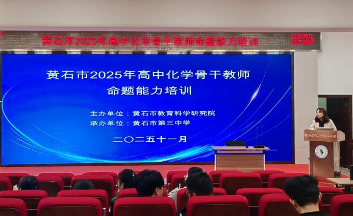 为精准把握高考化学命题改革趋势,提升全市高中化学骨干教师的命题素养与备考指导能力,11月10日,黄石市2025年高中化学骨干教师命题能力培训在黄石三中成功举行。本次培训特邀武汉市汉阳区教研员彭伟桥老师担任主讲专家,全市各高中化学教研员及骨干教师齐聚一堂,共研命题策略、共话备考新路径。