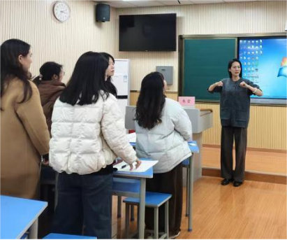 实战应用环节,教师们结合自身课堂常用语,运用所学技巧进行“声音改造”。大家通过结对练习、现场展示、即时点评的方式,亲身体验科学发声带来的音色变化与喉部减负效果,将理论知识转化为可直接应用的教学技能。分享尾声,朱莹还总结提炼出“课前热身、课中巧护、课后养护”的护嗓黄金法则,为教师们提供了一套切实可行的日常护嗓方案。