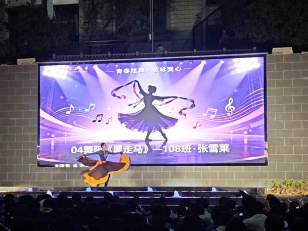 舞蹈类节目活力与风情兼具,用肢体演绎青春张力。108班张雪莱带来哈萨克族传统舞蹈《黑走马》,潇洒奔放的舞姿尽显草原的辽阔豪迈,让观众心驰神往;210班吕梓萌的藏族舞蹈《次仁拉索》节奏欢快、热情饱满,将雪域高原的真挚祝福传递给在场每一个人;最后,110班龙洋的活力街舞压轴登场,酷炫的动作、无限的活力瞬间引爆全场,用热烈自由的姿态为表演环节画上完美惊叹号。