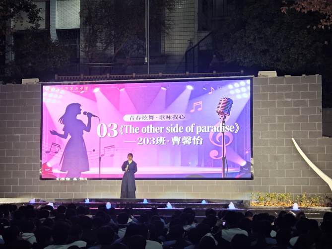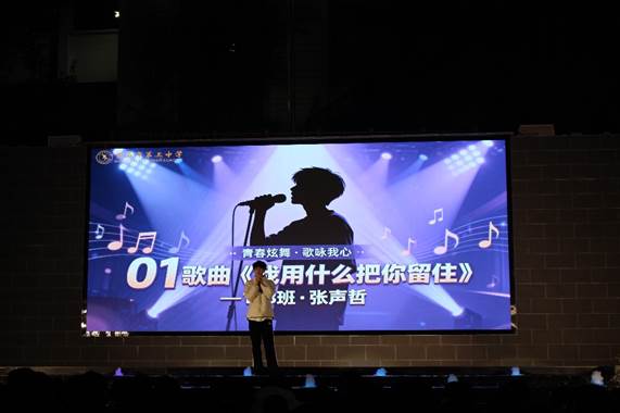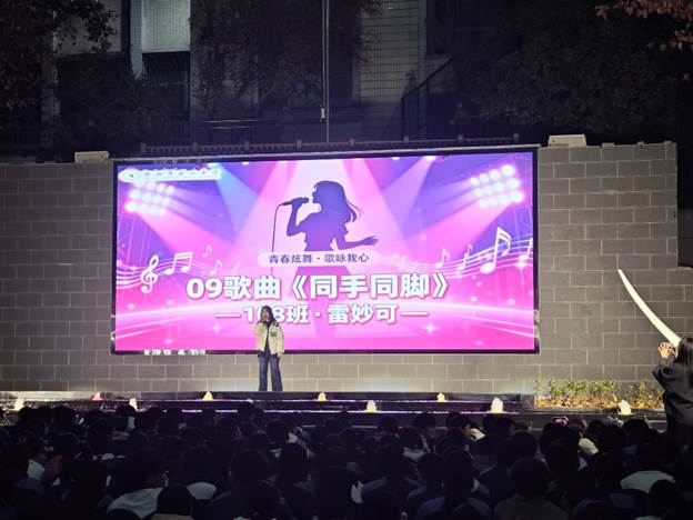 歌唱类节目温情与力量交织,用旋律定格青春模样。展演在108班张声哲《我用什么把你留住》的深情演唱中拉开序幕,真挚有力的歌声叩响艺术之门,瞬间点燃现场氛围;210班明佳妮以《永不失联的爱》传递爱的永恒承诺,温柔嗓音令人动容;214班陈瑞用《二十二》唱出年少专属的感悟与憧憬,引发学子强烈共鸣;209班徐紫忻的《月儿落西下》旋律悠扬,勾勒出静谧唯美的月色意境;116班张博毅的《美人鱼》带领观众潜入奇幻深海,在优美旋律中聆听动人故事;108班雷妙可的《同手同脚》温情脉脉,诠释手足情深与并肩同行的感动;203班曹馨怡,以《The other side of paradise》展现青春探索未知的勇气,独特风格为展演增添别样风采。