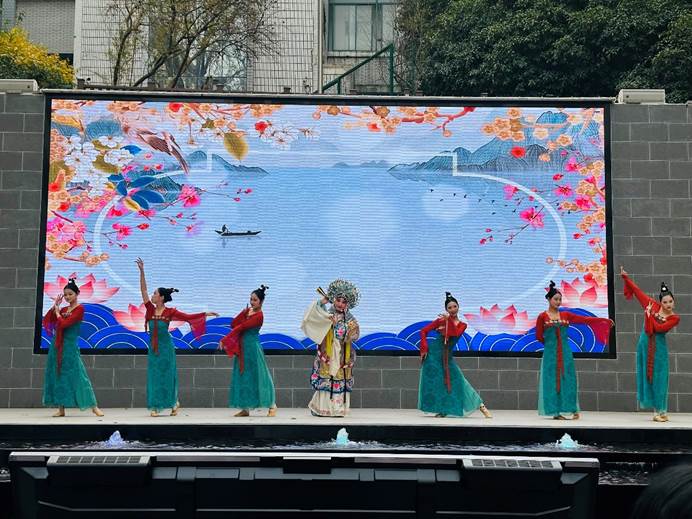 高一(8)班的同学们带来舞蹈《唐宫夜宴》,带领大家穿越古今,走进繁华盛唐。舞者们身着精致服饰,以灵动的舞姿再现了唐宫的璀璨盛景,传统美学与现代舞蹈的巧妙融合,让观众仿佛置身于千年之前的宫廷盛宴,领略到了中华文化的源远流长与魅力无穷。