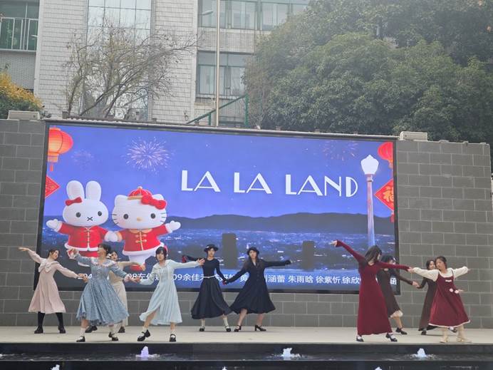 高一(1)班、高一(10)班的同学带来舞蹈《春节夜》,提前为大家送上了新春的祝福。欢快的节奏、喜庆的服饰、活泼的舞姿,将春节夜晚的团圆喜悦与辞旧迎新的豪情展现得惟妙惟肖,让现场洋溢着浓浓的年味与欢乐氛围。