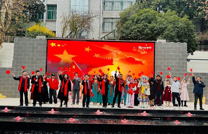 联欢会在全体师生共同唱响的《我和我的祖国》中推向高潮。学校领导与参演学生带领全场师生齐声高歌,激昂的旋律响彻校园,爱国之情、奋进之志在每一个人心中激荡。歌声中,既有对祖国的深情祝福,也有对新一年的美好期许。