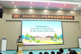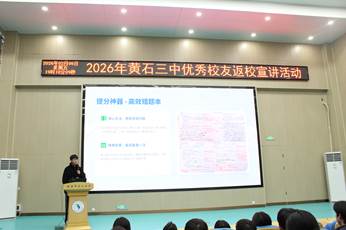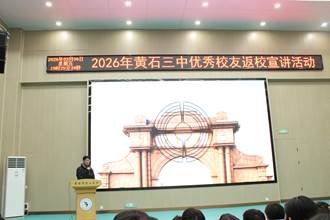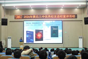 为传承优秀学习经验,激发在校学子学习动力,助力生涯规划,营造“传帮带”的浓厚校园文化,2026年2月6日晚18:00,黄石三中在新学术报告厅开展优秀校友返校宣讲活动,高一年级3个班学子齐聚现场,与优秀校友面对面交流,共话成长与梦想。