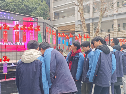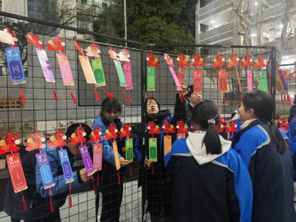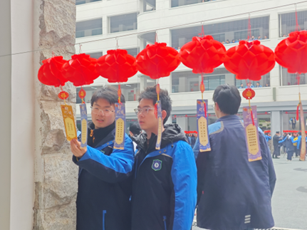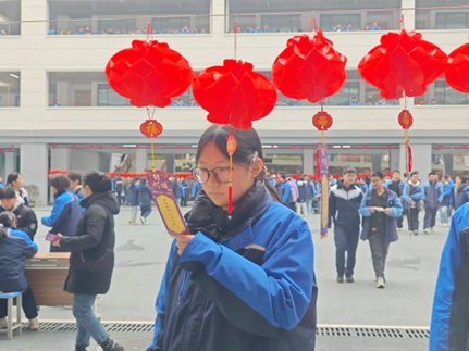 活动共甄选并悬挂字谜、成语谜、诗词谜、生活常识谜等各类灯谜800条,每条彩色谜条均标注唯一题号,错落有致地悬挂于广场之上,形成一道兼具文化气息与节日氛围的靓丽风景线。活动覆盖上午课间及中午12:00至13:00黄金时段,兼顾了师生的作息节奏,实现了广泛参与。
