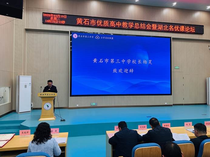 春山可望,教研同行;薪火相传,聚力成长。为总结优质高中教学经验,搭建校际教研交流平台,探索高效课堂教学路径,提升教师专业素养,2026年3月10日,黄石市优质高中教学总结会暨湖北名优课论坛在黄石三中顺利举办。本次活动由湖北云学名校联盟主办,黄石三中承办,来自全市各优质高中的年级管理干部、学科骨干教师齐聚我校,共赴这场以研促教、以教提质的教育盛会。