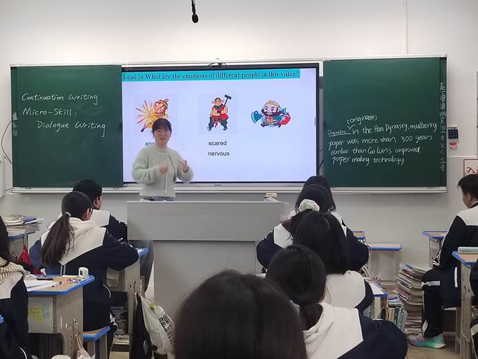 2026年4月1日,黄石三中英语教师张敏娟,在高三(10)班开展读后续写微技能 —— 对话描写公开课。课堂立足高三二轮复习备考重点,以趣味导入激活思维,精准聚焦对话描写常见问题,系统讲解对话三大基本结构与标点规范。课堂通过拓展 “say” 的多样替换词,指导学生用副词、介词短语、语气、声音修饰,让对话鲜活生动;重点突破 “动作+对话”融合写法,搭配改错、仿写、实战演练等环节,高效掌握对话描写核心技能。