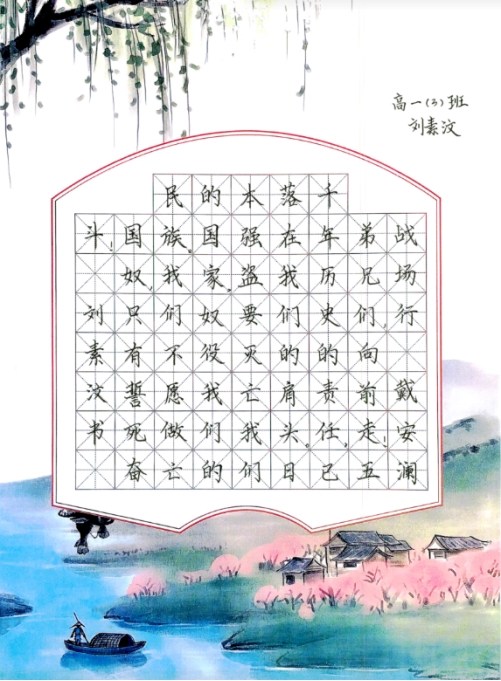 根据比赛安排,汉字书写大赛于9月9日正式启动班级初赛,全体高一学生积极参与,各班语文教师组织初选,最终从每班中推举3位优秀代表参加年级决赛。9月12日下午,决赛在学校八楼录播室举行,参赛学子凝神静气,围绕“笔承家国志”主题,以工整楷书展现对家国文化的理解与传承。赛后,评委肖龙洋、高群智、龚伶俐、姜志钢老师从书写规范、结构布局、艺术表现等维度对作品进行严格评审,最终评出一等奖8人、二等奖14人、三等奖26人。优秀作品将制成展板在校园展示,供师生观摩学习。