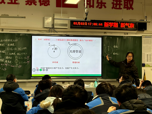 本节课教学环节设计紧凑、逻辑清晰,充分体现了以学生为主体的物理课堂理念。教师以课前五分钟回顾匀速、变速圆周运动相关知识,有效夯实基础、衔接新知;借助过山车、水流星等直观实验演示,极大激发了学生学习兴趣与探究热情。课堂自然引出竖直平面内绳球模型,重点对最高点、最低点进行受力分析,严谨推导临界最小速度,将抽象物理规律与生活现象紧密结合,有效突破教学重难点。习题巩固环节,教师组织学生上台板演,严格规范受力分析、解题思路与书写格式,注重培养学生科学思维与规范答题习惯,整堂课目标明确、重点突出、实效性强。