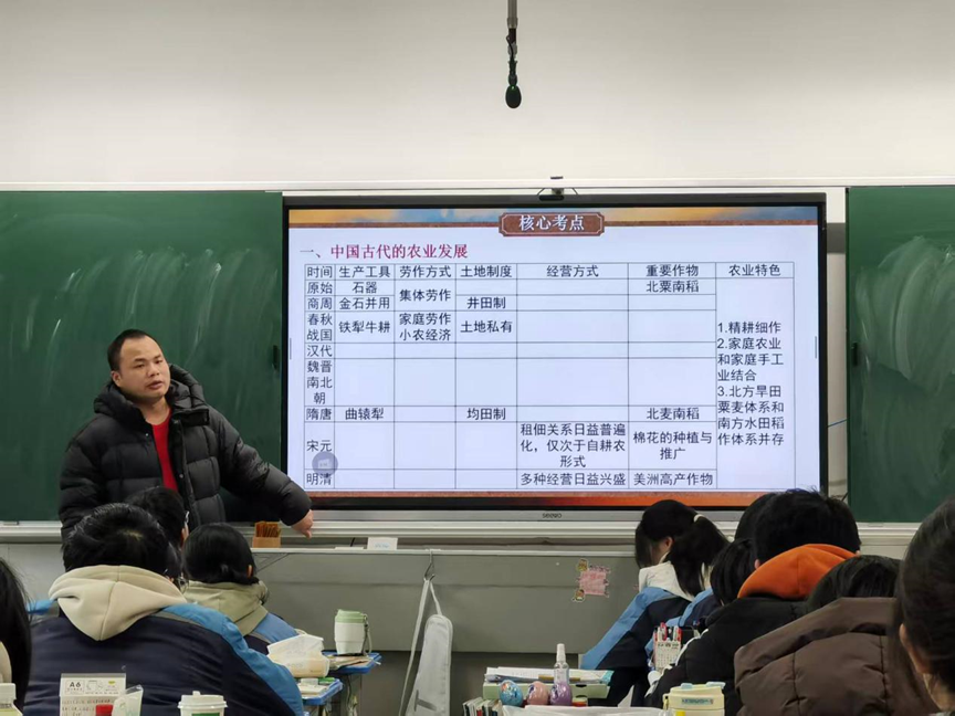 欧老师从体系建构、线索梳理、概念阐释、核心考点突破、真题训练等五个方面设计课堂,以中国古代农业、手工业、商业三个重要经济部门为线索整合纲要和选必教材的内容,体系建构宏大全面,基础梳理扎实清晰,概念阐释准确透彻,重难点突破深入浅出,达到了较好的教学效果。