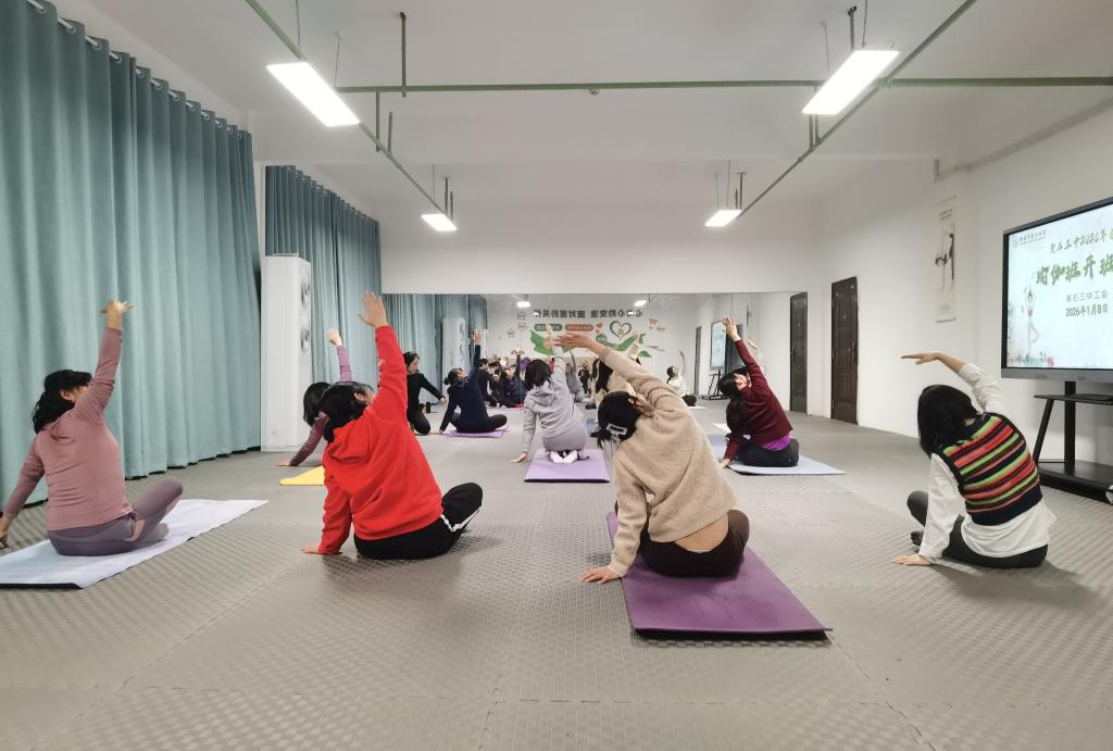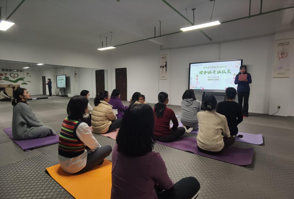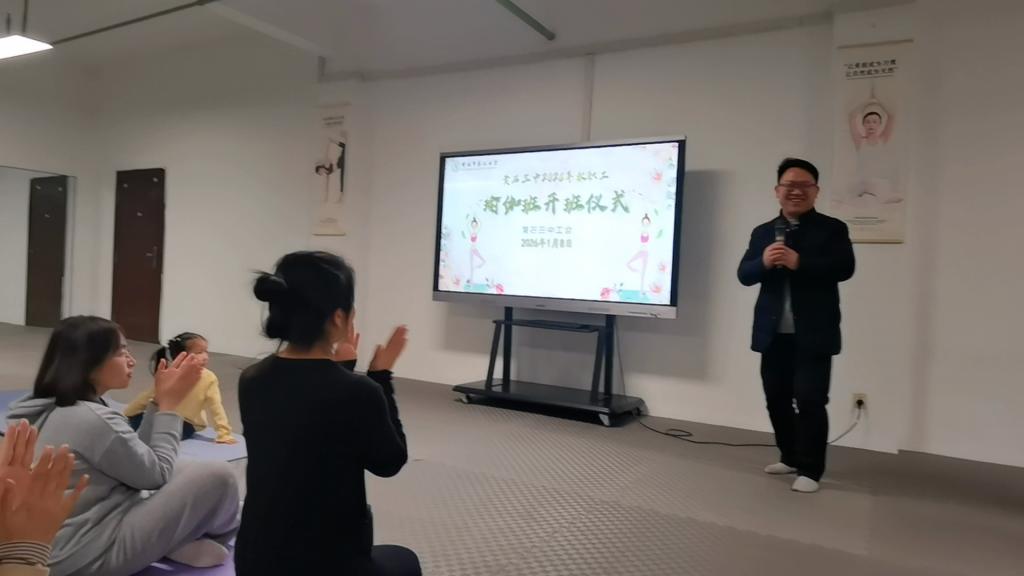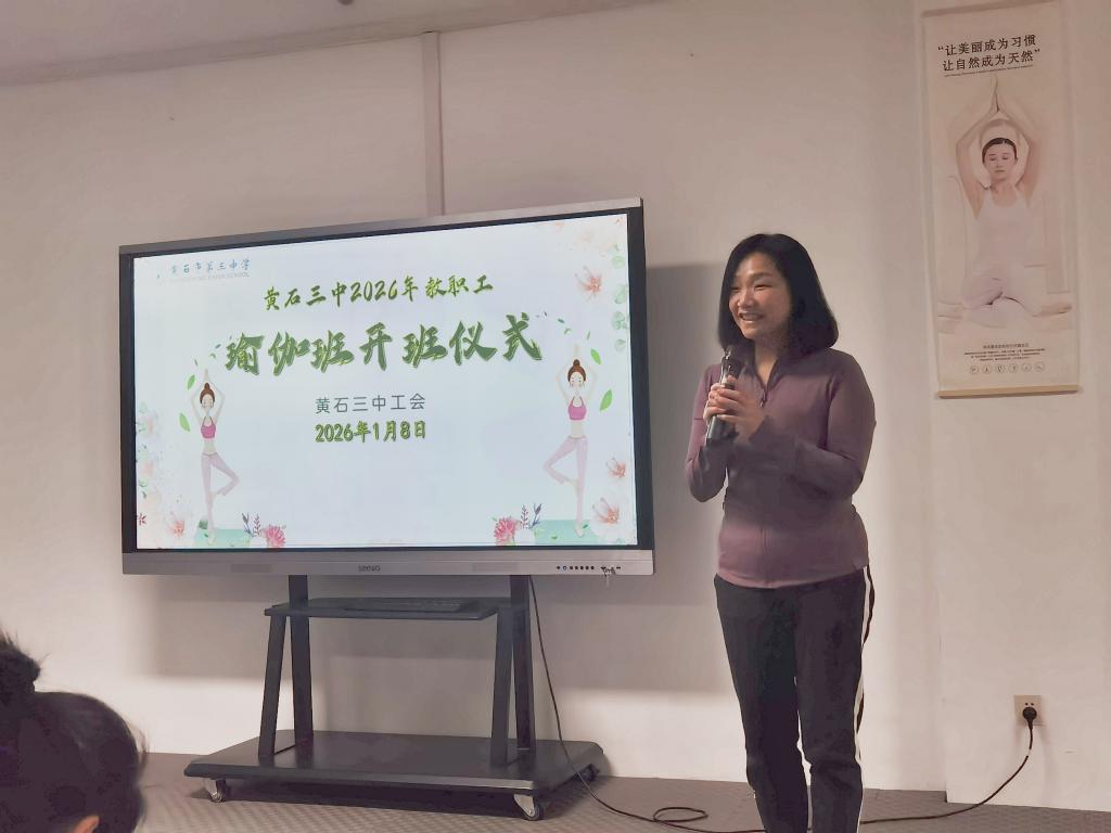为进一步丰富教职工精神文化生活,倡导健康文明的生活方式,营造积极向上的校园氛围,2026年1月8日,由黄石三中工会精心筹备的教职工瑜伽班开班仪式在综合楼八楼心灵驿站隆重举行。校工会主席程莉副校长主持仪式,学校领导班子成员、全体报名教职工及专业瑜伽授课老师参加了本次活动。